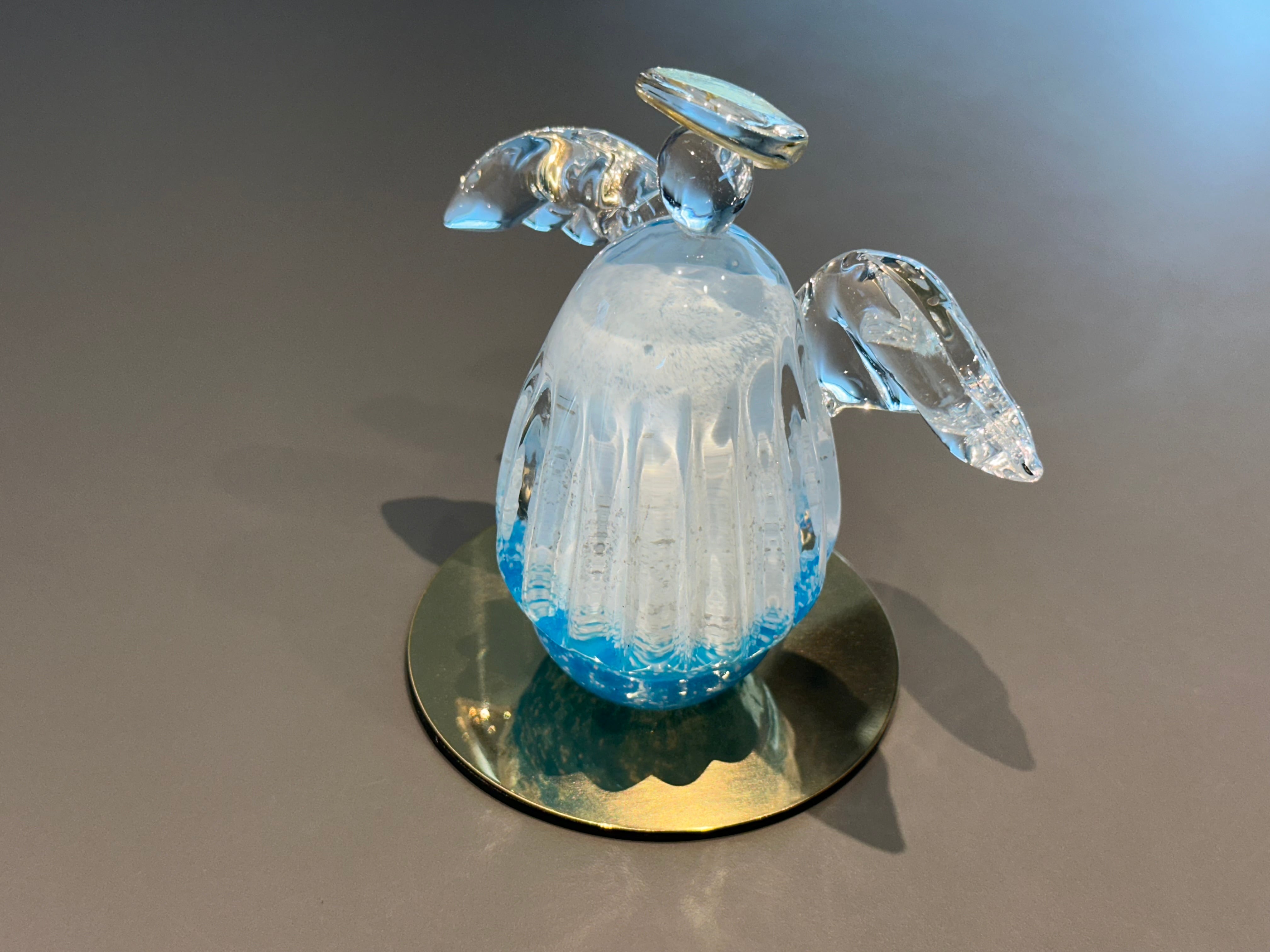 空に舞い上がる天使、 その優雅な姿と柔らかな曲線が特徴で、光を受けると美しい輝きを放ちます。お部屋に飾ることで、その神秘的な存在感が心を和ませてくれます。特に、特別な日や大切な方への贈り物としても最適です。 サイズ: 本体 縦10×横10×奥行5.5cm 台 8.5×8.5cm デザイン ichi glass 原加奈子 制作 厚木グラススタジオ *金額は一体の価格となります。 *手作りのため、形や色に多少の個体差がございます。