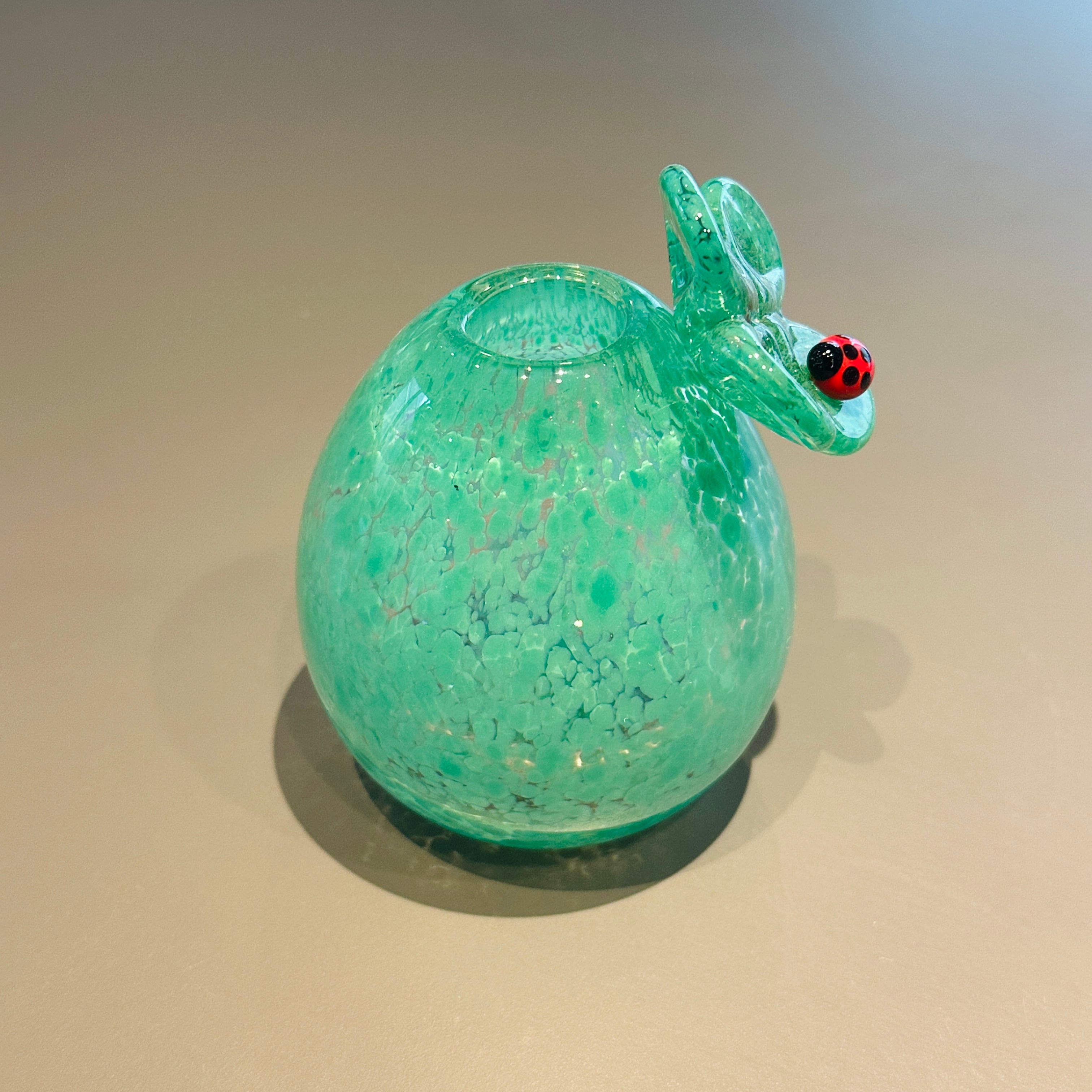 てんとう虫がクローバーをモチーフにした花器です。 1輪の花を入れると、まるで花にてんとう虫が寄り添うようです。てんとう虫はナナホシになっていてとても縁起が良いとされます。 小さな花を一輪飾ることで、日常の中に自然の息吹を感じることができます。特に、お祝いのギフトや大切な方へのプレゼントとしてもぴったりのアイテムです。 サイズ:縦9×横6.5×奥行6.5 デザイン ichi glass 原加奈子 制作 ichi glass 原加奈子 *手作りのため、形や色に多少の個体差がございます。