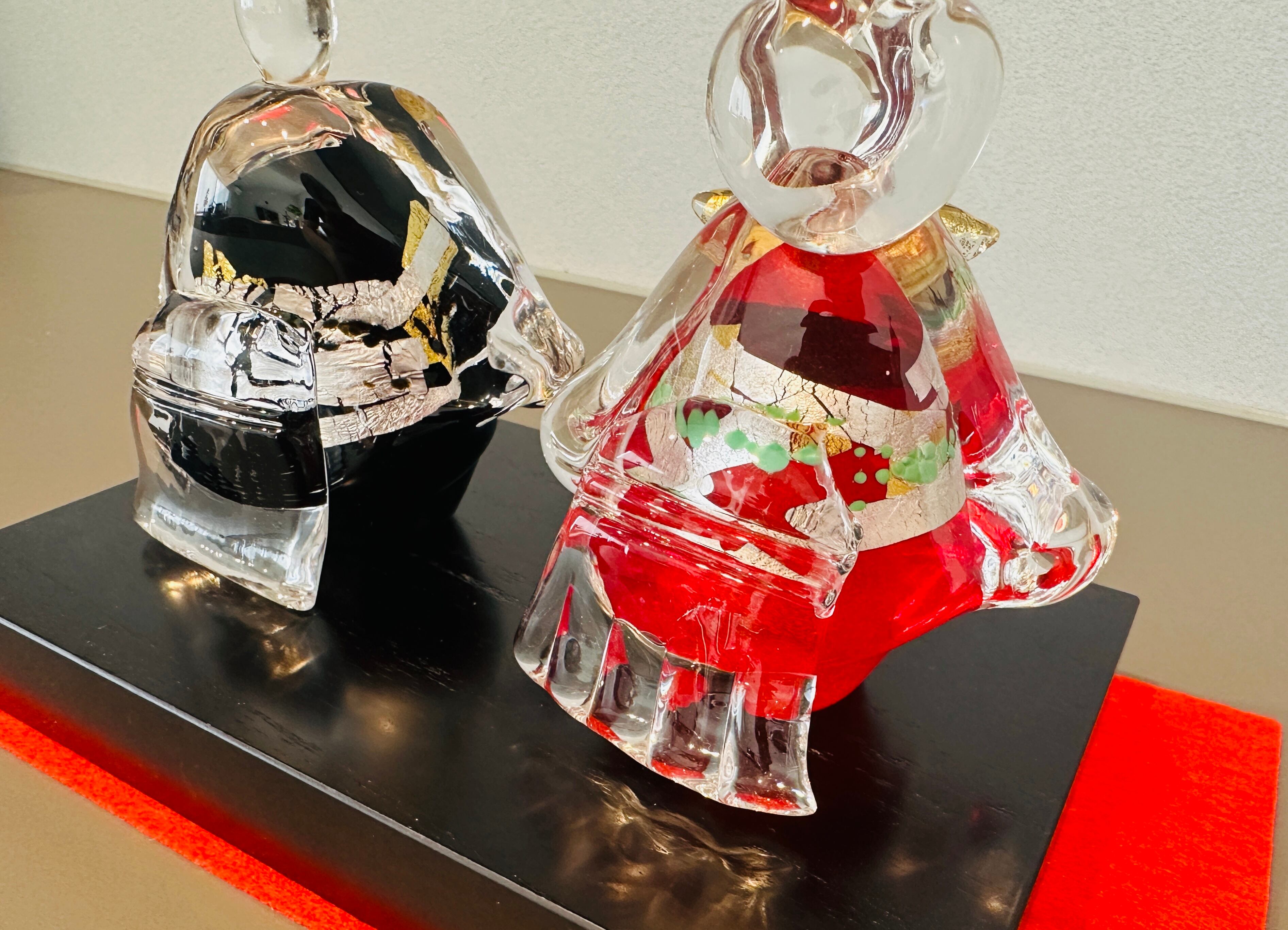 赤と黒のシックなカラーの組み合わせの大人のお雛様です。着物の形をデフォルメしながら、着物を纏う様を表現しています。