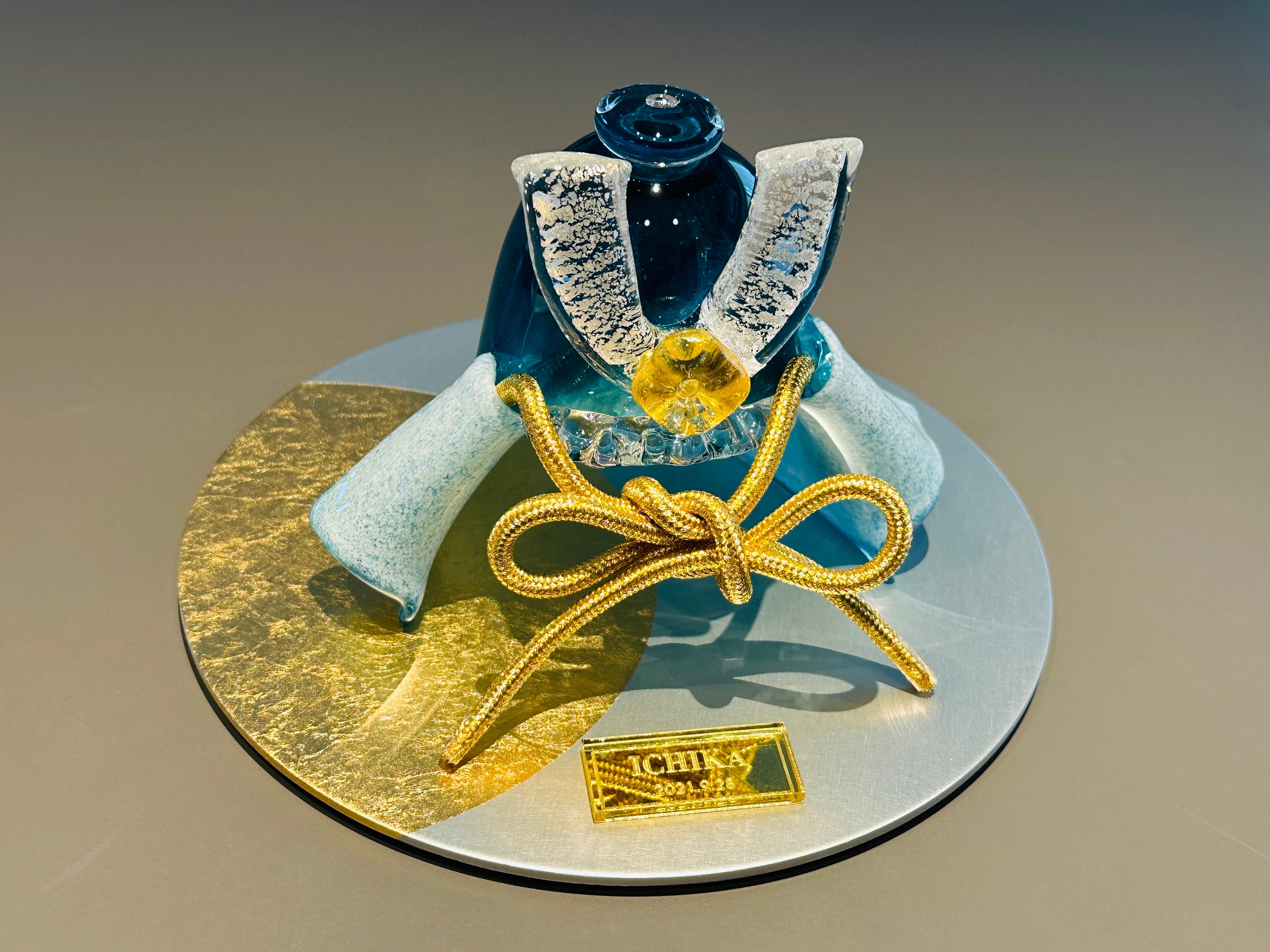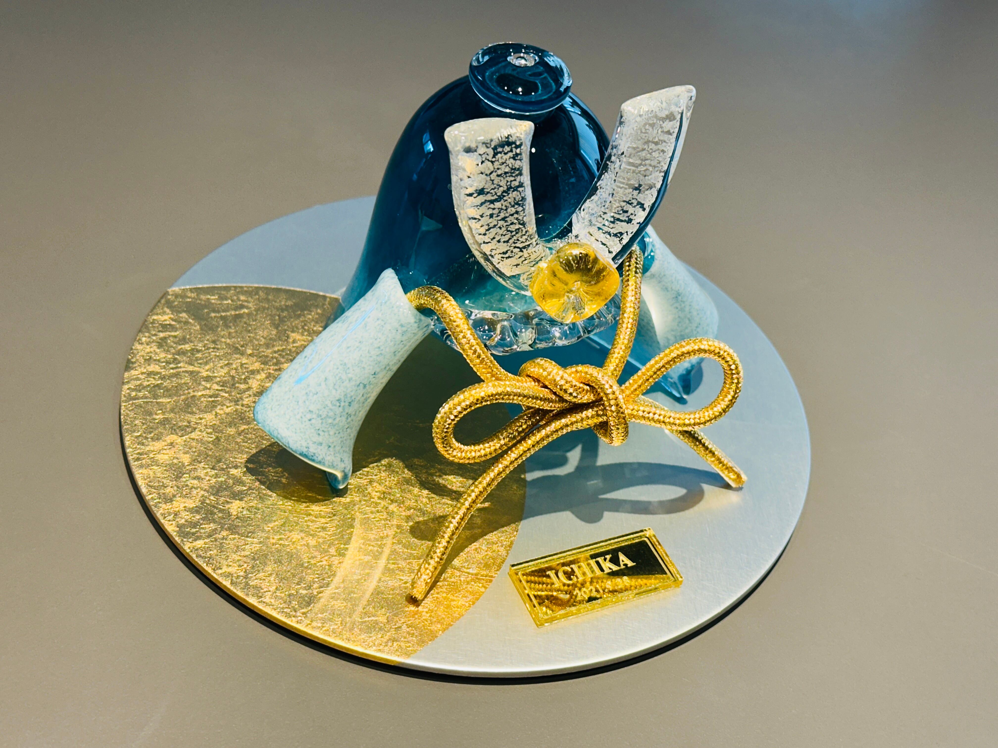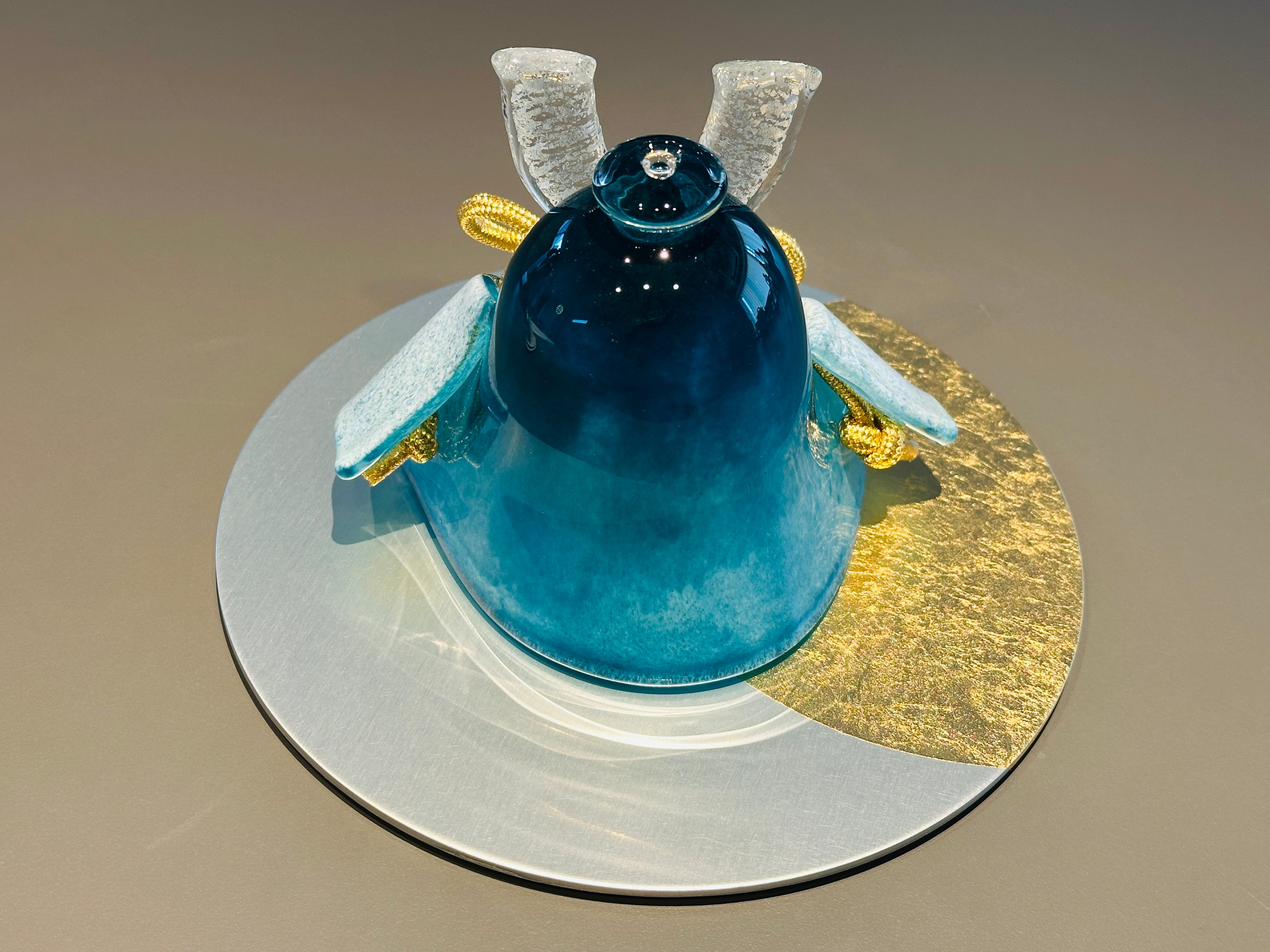海の美しさを感じさせる海色の兜は、神秘的でありながら優雅なデザインが魅力的なアイテムです。この兜は、海の青をイメージした色合いで、どんな空間にも涼しげな印象を与えます。波のように流れる曲線のデザインは、見る人の心を豊かにし、特別な瞬間を演出します。 サイズ: 本体 縦9.5×横13×奥行8cm 金属円台 19×19cm 厚み0.5cm デザイン ichi glass 原加奈子 制作 厚木グラススタジオ *手作りのため、形や色に多少の個体差がございます。